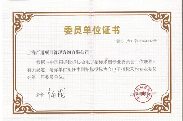 2019年7月17日,中國招標投標協會電子招標采購專業委員會成立大會暨第一次工作會議在北京召開,根據《中國招標投標協會電子招標采購專業委員會工作規程》,我司擔任中招協電子招標采購專業委員會第一屆委員單位。