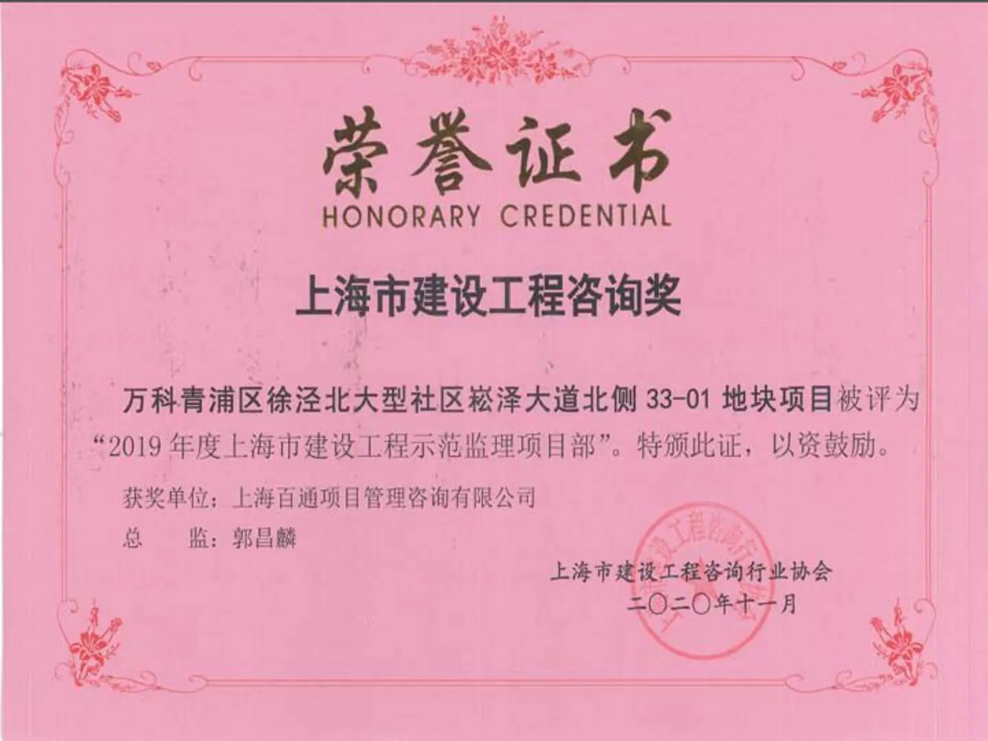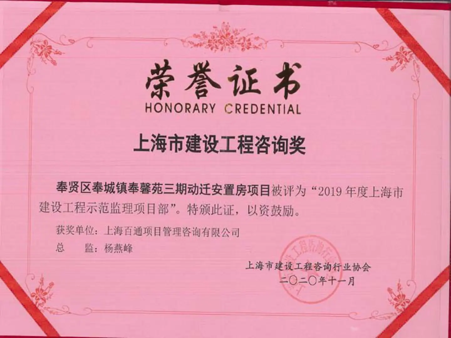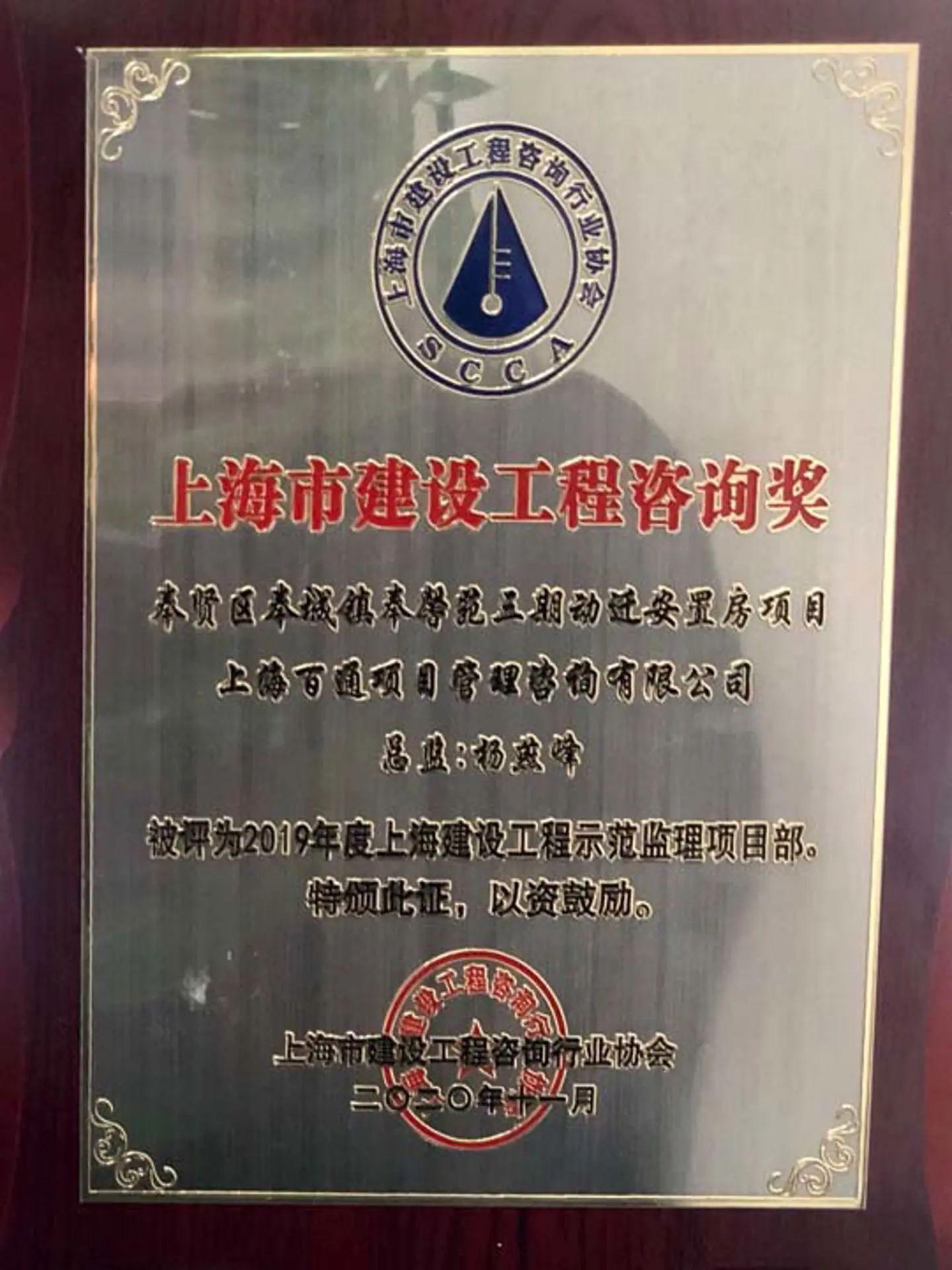 我公司監(jiān)理的奉賢區(qū)奉城鎮(zhèn)奉馨院三期動遷房安置房項目、萬科青浦區(qū)徐涇北大型社區(qū)崧澤大道北側33-01地塊項目,在2020年上海市建設工程咨詢行業(yè)協(xié)會開展“創(chuàng)建示范監(jiān)理項目部”活動中榮獲2019年度示范監(jiān)理項目部稱號
