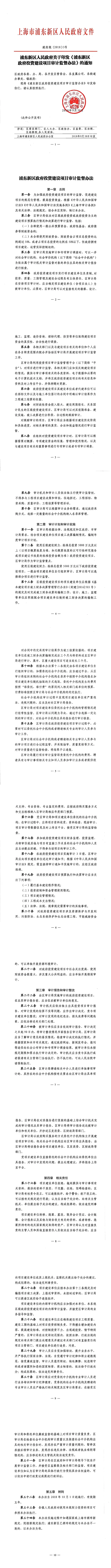 关于印发《关于浦东新区政府投资建设项目审计监督办法》的通知【浦府规〔2018〕3号】