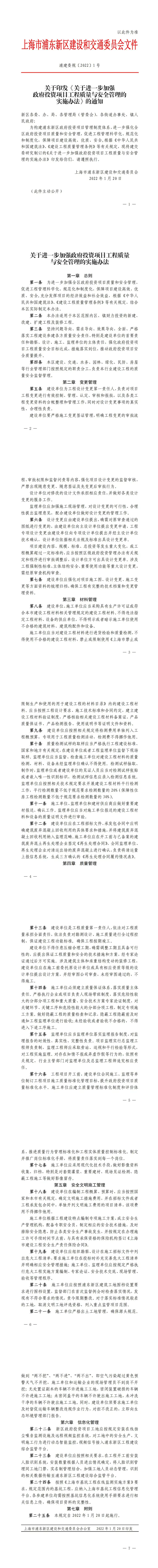关于印发进一步加强政府投资项目工程质量与安全管理的实施办法的通知【浦建委规【2022】1号】