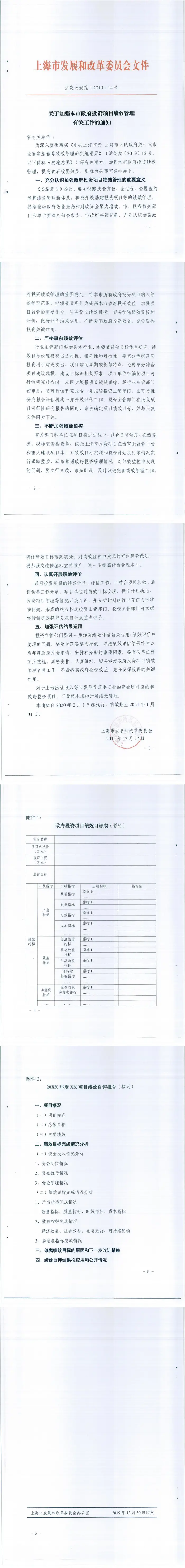 [市发改委] 关于加强本市政府投资项目绩效管理有关工作的通知【沪发改规范〔2019〕14号】