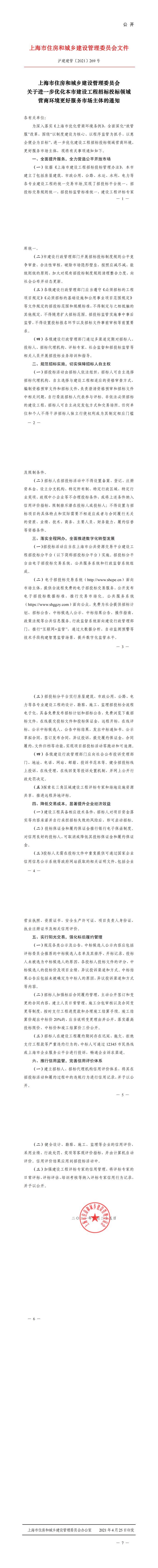 关于进一步优化本市建设工程招标投标领域营商环境更好服务市场主体的通知(沪建建管〔2021〕269)号