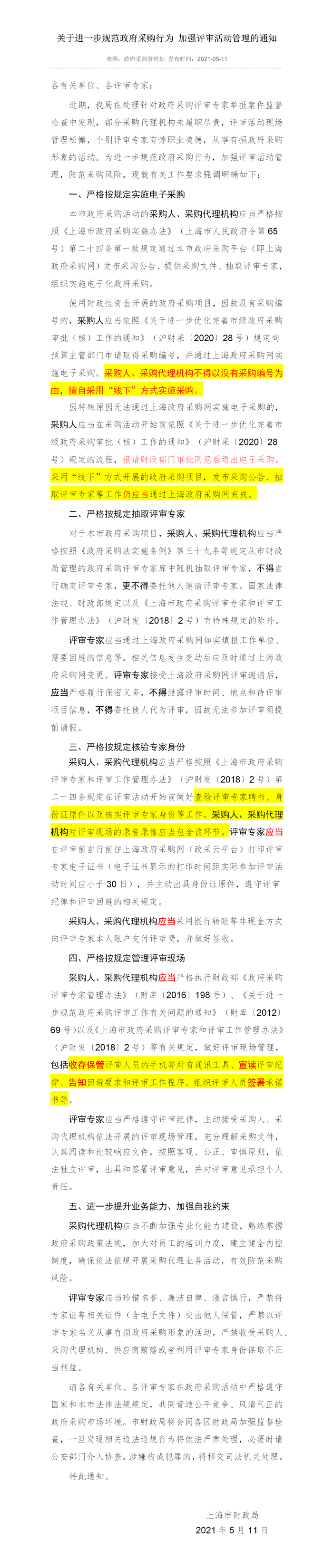 关于进一步规范政府采购行为 加强评审活动管理的通知
