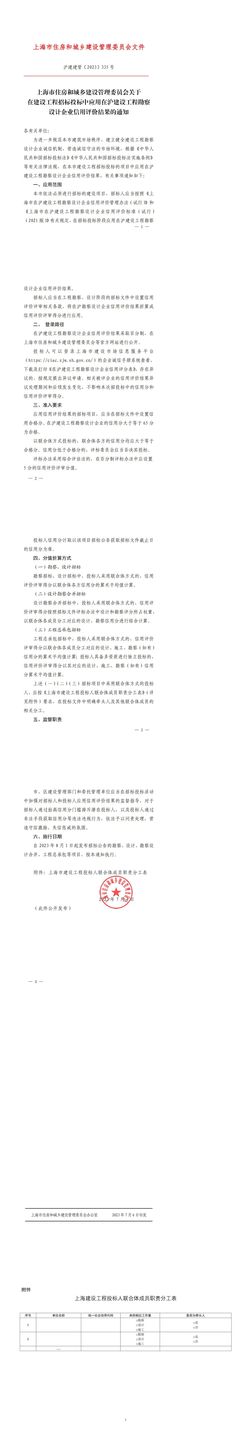 [市住建委]上海市住房和城乡建设管理委员会关于在建设工程招标投标中应用在沪建设工程勘察设计企业信用评价结果的通知【沪建建管〔2023〕335 号】