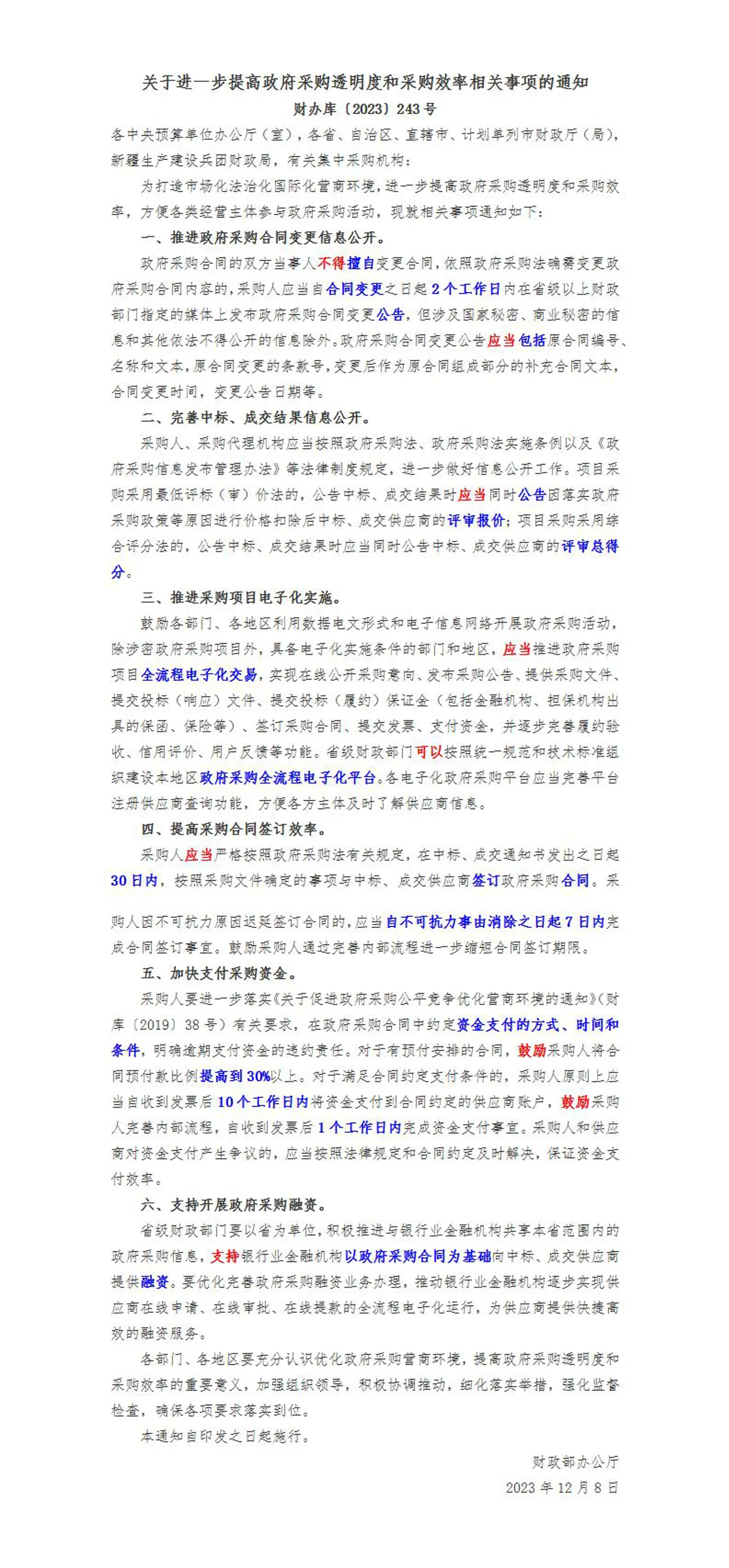 [财政部]关于进一步提高政府采购透明度和和采购效率相关事项的通知【财办库〔2023〕243号】