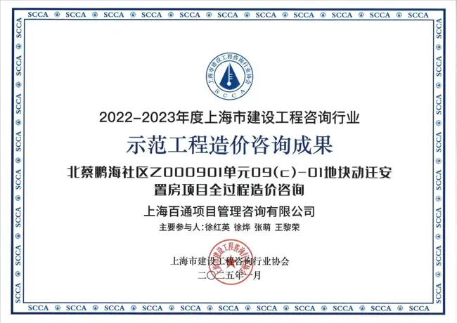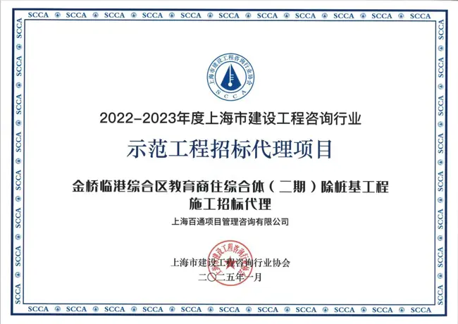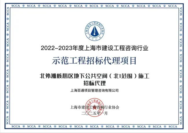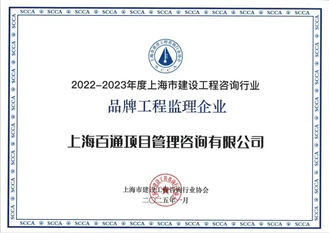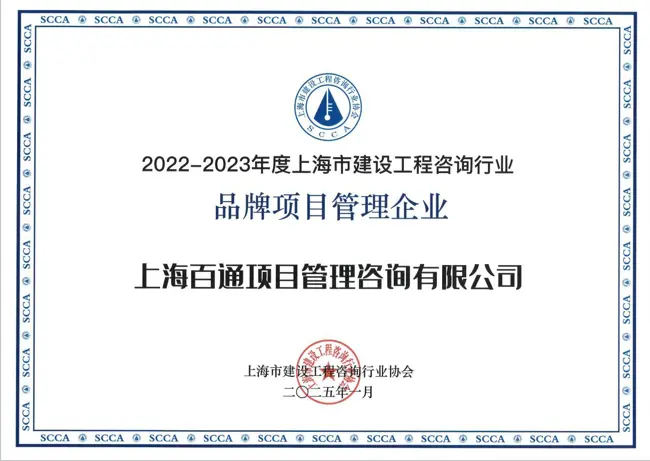 近日,在上海市建設工程咨詢行業協會組織開展的2022-2023年度上海市建設工程咨詢行業選樹活動中,上海百通項目管理咨詢有限公司充分發揮企業和從業人員開拓創新、積極進取精神,在“公平競爭、誠信經營、廉潔自律、制度健全、重視效益、愛崗敬業、隊伍穩定、熱心公益、品牌提升”等多維度、多方面參加了此次創優評選活動,獲得殊榮: