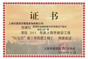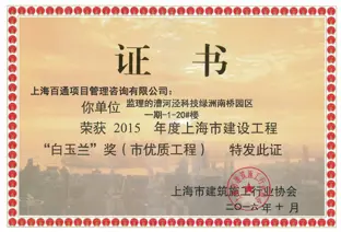 近日,經激烈評選角逐,由我司監理的漕河涇科技綠洲南橋園區一期-1-20#樓項目和金融數據分析系統及產業化項目2#廠房項目榮獲2015年度上海市建設工程“白玉蘭”獎(市優質工程),該獎項是上海市建筑行業工程質量的最高榮譽。