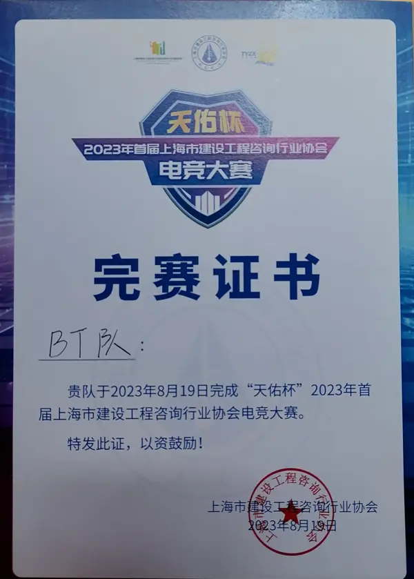 為進一步加強行業精神文明建設,提升行業凝聚力,8月19日,上海市建設工程咨詢行業協會舉辦“天佑杯”首屆協會電競大賽(2023)。百通公司7名青年組成“BT隊”參賽。