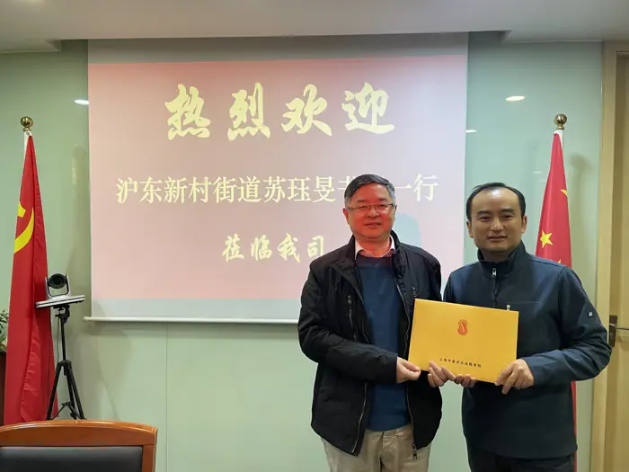 12月6日上午,滬東新村街道黨工委書記、人大工委主任蘇玨旻、滬東新村街道社區營商環境辦公室主任韓俊、副主任張丹萍一行蒞臨公司走訪慰問,為公司送來“上海市重點企業服務包”和慰問品。公司董事長王大年、總經理王一鳴、黨委書記、副總經理顧超熱情接待蘇書記一行。