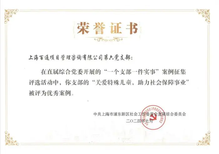 “七一”前夕,6月26日下午,上海百通項(xiàng)目管理咨詢有限公司黨委書記、副總經(jīng)理顧超同志、黨群工作部、獲獎黨支部代表、獲獎黨員代表、“黨課開講啦”情景劇《一通百通》全體演職人員參加了浦東新區(qū)社會工作黨委直屬綜合黨委慶祝建黨103周年暨表彰活動。