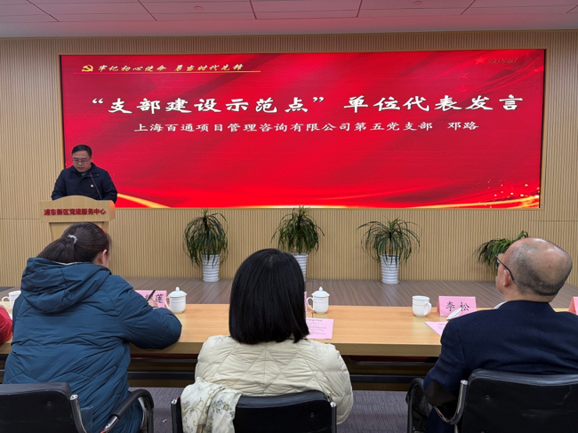 百通第五黨支部(代建板塊黨支部)榮獲“支部建設(shè)示范點(2025.01-2027.01)”榮譽稱號,支部委員鄧路同志代表獲獎單位交流發(fā)言;第二黨支部黨員虞明明同志、第六黨支部黨員鄒建文同志榮獲“黨員先鋒崗”榮譽稱號。