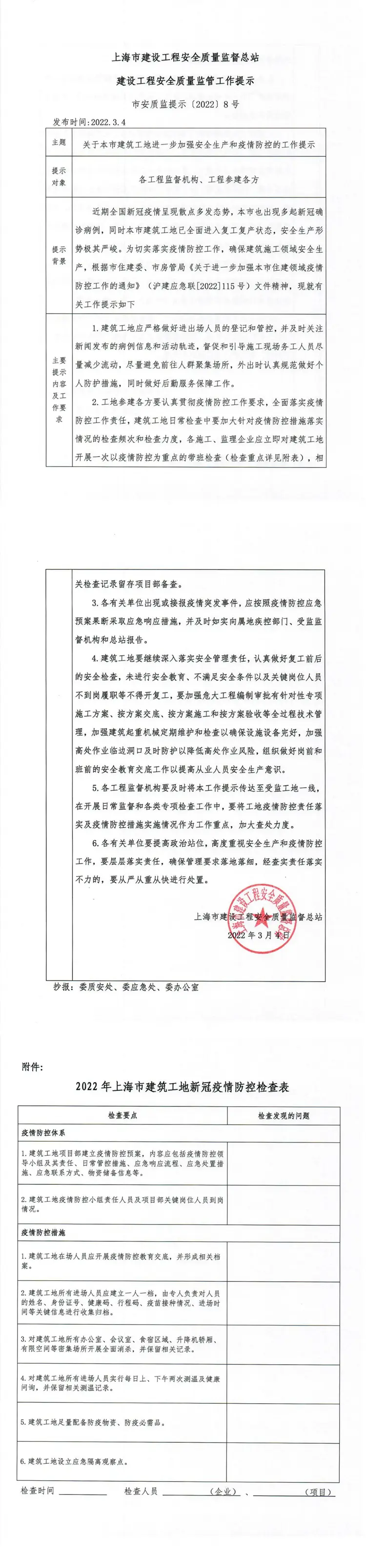 市安质监提示【2022】8号《关于本市建筑工地进一步加强安全生产和疫情防控的工作提示》