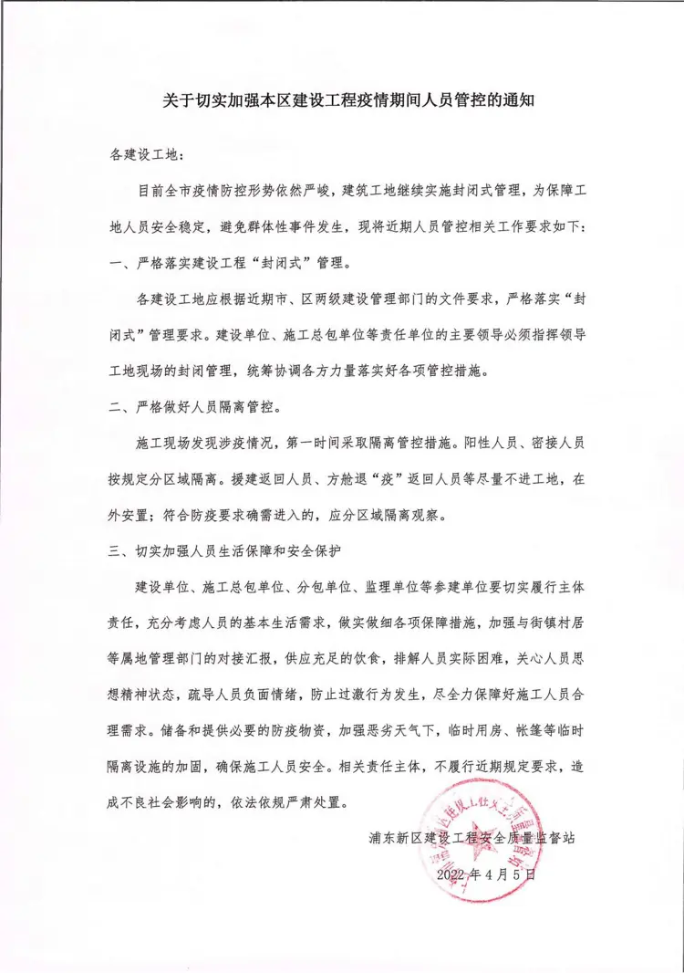 关于切实加强本区建设工程疫情期间人员管控的通知