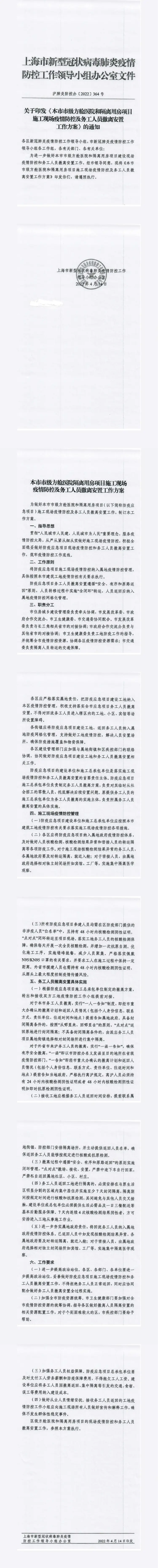 沪肺炎防控办〔2022〕364号《关于印发《本市市级方舱医院和隔离用房项目施工现场疫情防控及务工人员撤离安置工作方案》的通知》