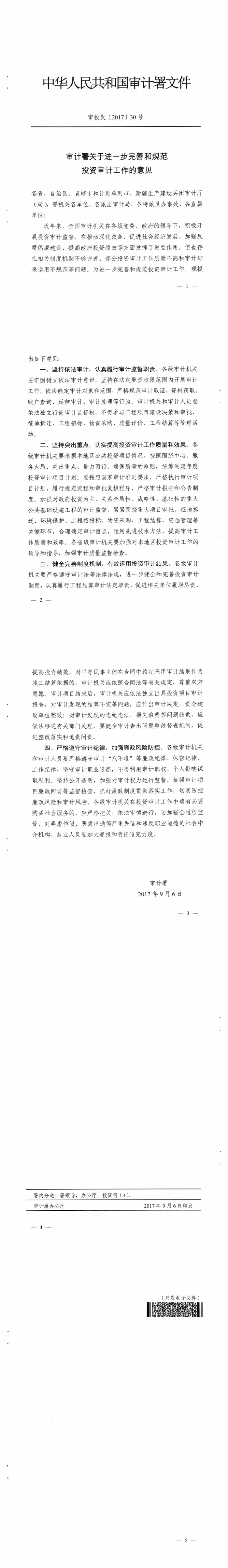 [审计署] 关于进一步完善和规范投资审计工作的意见【审投发〔2017〕30号】